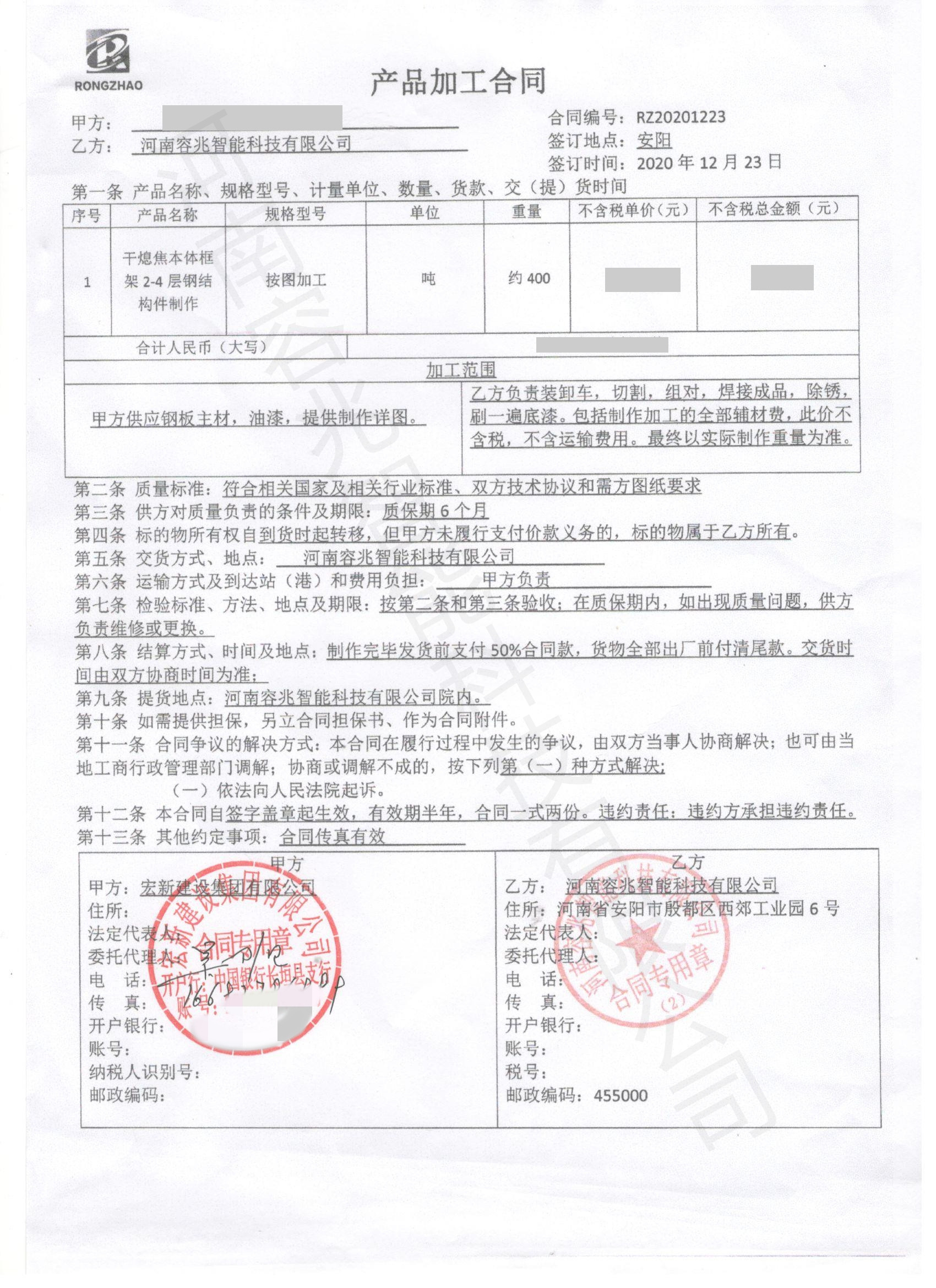 欣川環(huán)保干熄焦平臺鋼梁制作項目